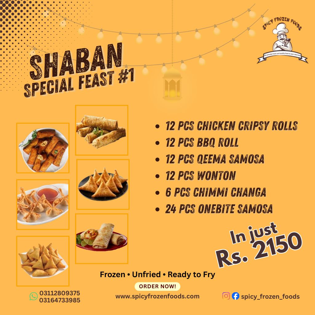 Prepare for Ramadan with our Shaban Feast 1 – a thoughtfully curated feast pack priced at Rs 2,150. This pack includes a variety of flavorful items perfect for Iftar, family meals, or sharing with loved ones. Enjoy convenience, quality, and taste all in one special Shaban feast pack.